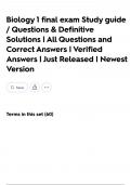 Biology 1 final exam Study guide / Questions & Definitive Solutions | All Questions and Correct Answers | Verified Answers | Just Released | Newest Version