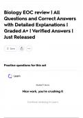 Biology EOC review | All Questions and Correct Answers with Detailed Explanations | Graded A+ | Verified Answers | Just Released