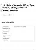 U.S. History Semester 1 Final Exam Review / of Key Quizzes & Correct Answers.