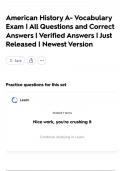 American History A- Vocabulary Exam | All Questions and Correct Answers | Verified Answers | Just Released | Newest Version
