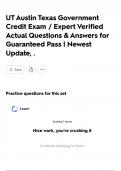UT Austin Texas Government Credit Exam / Expert Verified Actual Questions & Answers for Guaranteed Pass | Newest Update, .