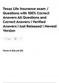 Texas Life Insurance exam / Questions with 100% Correct Answers All Questions and Correct Answers | Verified Answers | Just Released | Newest Version