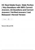 NC Real Estate Exam- State Portion / Key Questions with 100% Correct Answers. All Questions and Correct Answers | Verified Answers | Just Released | Newest Version