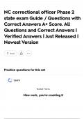 NC correctional officer Phase 2 state exam Guide / Questions with Correct Answers A+ Score. All Questions and Correct Answers | Verified Answers | Just Released | Newest Version