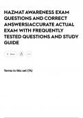 HAZMAT AWARENESS EXAM QUESTIONS AND CORRECT ANSWERS|ACCURATE ACTUAL EXAM WITH FREQUENTLY TESTED QUESTIONS AND STUDY GUIDE