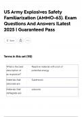US Army Explosives Safety Familiarization (AMMO-63). Exam Questions And Answers |Latest 2025 | Guaranteed Pass