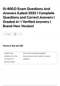 IS-800.D Exam Questions And Answers |Latest 2025 | Complete Questions and Correct Answers | Graded A+ | Verified Answers | Brand New Version!