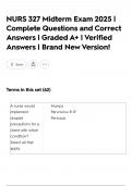 NURS 327 Midterm Exam 2025 | Complete Questions and Correct Answers | Graded A+ | Verified Answers | Brand New Version!