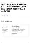 WISCONSIN MOTOR VEHICLE SALESPERSON MANUAL TEST EXAM 2025 QUESTIONS AND ANSWERS