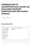 INTRODUCTION TO AMMUNITION (Cert) (AMMO-45) EXAM 2025 COMPLETE QUESTIONS With 100% Verified Solutions,