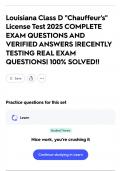 Louisiana Class D "Chauffeur's" License Test 2025 COMPLETE EXAM QUESTIONS AND VERIFIED ANSWERS |RECENTLY TESTING REAL EXAM QUESTIONS| 100% SOLVED!!