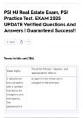 PSI NJ Real Estate Exam, PSI Practice Test. EXAM 2025 UPDATE Verified Questions And Answers | Guaranteed Success!!