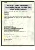 NU160 MENTAL HEALTH EXAM 2 2025 MULTICHOICE ANSWERED EXAM QUESTIONS WITH DETAILED RATIONALES