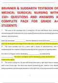 BRUNNER & SUDDARTH TESTBOOK OF MEDICAL SURGICAL NURSING WITH 150+ QUESTIONS AND ANSWERS A COMPLETE PACK FOR GRADE A+ STUDENTS