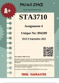 STA3710 Assignment 4 (894289) |COMPLETE WORKINGS & SOLUTIONS|- DUE 9 September 2025