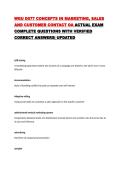 This document contains a comprehensive collection of exam questions and verified answers for the WGU D077 course, covering key concepts in marketing, sales, and customer contact. It reviews essential topics such as the marketing mix, consumer behavior, market segmentation, sales processes, marketing research, and strategic marketing tools like SWOT and the BCG matrix. The material is structured in a question-and-answer format to support effective exam preparation and concept review. It is suitab...