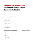 Tennessee Life Insurance Exam Questions and Verified Correct Answers| Latest Update