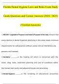 Florida Dental Hygiene Laws & Rules Exam Questions And Verified Answers 2024