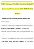 - NASM Stretching and Flexibility Exam Study Guide, 200+ Questions and Answers (2024 / 2025) (Verified Answers) • Examen