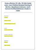 Review | Questions & Answers | 100% Correct (Verified Solutions) | Grade A - Galen i x Examen • 22 páginas • por LUCIDWISE • subido 2026 Vista rápida i x NU 189 • NU 189 NU 155 EXAM 3 MEDICAL-SURGICAL NURSING I QUESTIONS AND VERIFIED ANSWERS WITH RATIONALES 100% GUARANTEED PASS GRADED A+ LATEST GALEN COLLEGE (0) $16.99 0x vendido NU 155 EXAM 3