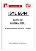 TEST BANK PALACE FEEL FREE TO INBOX 749 Documentos 0 Tarjetas de estudio 21 Paquetes Community 6 Seguidores 0 Siguiendo 212 Comentarios recibidos 174 21 11 2 4 4 semanas hace • charlena TEST BANK FOR BONTRAGERS TEXTBOOK OF RADIOGRAPHIC POSITIONING AND RELATED ANATOMY 10TH EDITION BY LAMPIGNANO 1 mes hace • behebekana TEST BANK FOR BRUNNER & SUDDARTH'S TEXTBOOK OF MEDICAL-SURGICAL NURSING 14TH EDITION| ALL 73 CHAPTERS COVERED | A” GUIDE some information were out of place 1 mes hace • nhodges83 TEST BANK | HUMAN PHYSIOLOGY AN INTEGRATED APPROACH 8TH EDITION SILVERTHORN| ALL CHAPTERS | 100% VERIFIED 2 meses hace • lilliannamutamba19 TEST BANK FOR FUNDAMENTALS OF NURSING, 12TH EDITION BY PATRICIA A. POTTER, ANNE G. PERRY, PATRICIA A. STOCKERT, AMY HALL, AND WENDY R. OSTENDORF| COMPLETE VERIFIED CHAPTERS 1-50| QUESTIONS WITH CORRECT ANSWERS A+ GRADED 100% VERIFIED 4 meses hace • rhotriciawhite NSG 5003 WEEK 1, 2, 3, 4, 5, 6, 7, 8, 9, 10 KNOWLEDGECHECK QUIZ WITH COMPLETE SOLUTION GUARANTEED SUCCESS. + Mostrar mas comentarios 773 artículos Todo Documentos Tarjetas de estudio Paquetes Lo más vendido El más nuevo Puntuación ISYE 6644 SUMMER 2024 MIDTERM TEST 1 34 ACTUAL QUESTIONS AND CORRECT ANSWERS (0) $17.49 0x vendido ISYE 6644