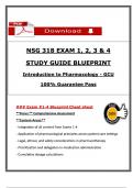 NSG 318 Introduction to Pharmacology Exam Bundle (Exams 1–4) for Grand Canyon University. Includes study guides, blueprints, practice questions, and rationalized answers covering key pharmacology concepts, drug classifications, medication safety, and exam preparation.