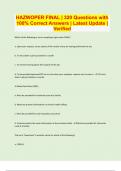 HAZWOPER FINAL | 320 Questions with 100% Correct Answers | Latest Update | Verified