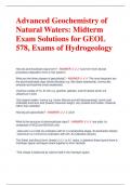 Advanced Geochemistry of Natural Waters: Midterm Exam Solutions for GEOL 578, Exams of Hydrogeol