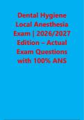 Dental Hygiene Local Anesthesia Exam | 2026/2027 Edition – Actual Exam Questions with 100% ANS