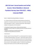 Pass NSG 526 Exam 3 with confidence using this complete study guide featuring actual exam questions and verified answers for Clinical Modalities in Advanced Psychiatric Nursing. Specifically designed for Wilkes University PMHNP students and updated for the latest 2026/2027 curriculum. Covers essential psychiatric modalities, therapeutic interventions, and advanced practice concepts required for exam success. Each question includes verified answers to help you master the material and pass with co...