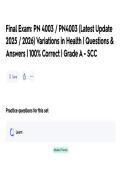 Final Exam- PN 4003 - PN4003 (Latest Update ) Variations in Health - Questions & Answers - 100% Correct - Grade A - SCC