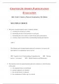 Ball: Seidel’s Guide to Physical Examination, 9th Edition MULTIPLE CHOICE 1. The goals of preparticipation sports evaluation include: a. screening for steroid use or abuse. b. determining the best fit for positions in each sport. c. determining the risk of injury or death during sports participation. d. securing a legal contract before recommending limiting participation. ANS: C The ultimate goal of preparticipation physical evaluation is to ensure safe participation in an appr...