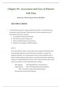 MULTIPLE CHOICE 1. A client who had surgery has extreme postoperative pain that is worsened when trying to participate in physical therapy. Which intervention for pain management does the nurse include in the client’s care plan? a. As-needed pain medication after therapy b. Pain medications prior to therapy only c. Patient-controlled analgesia with a basal rate d. Round-the-clock analgesia with PRN analgesics ANS: D Severe pain related to surgery or tissue trauma is best manag...