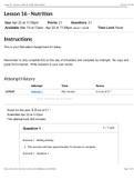 VCE Lesson 16--Nutrition-HESI RN FLMIR 1904COHORT : Latest-2021, a complete document for examVCE Lesson 16--Nutrition-HESI RN FLMIR 1904COHORT : Latest-2021, a complete document for examVCE Lesson 16--Nutrition-HESI RN FLMIR 1904COHORT : Latest-2021, a complete document for exam