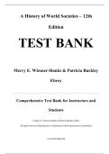 This complete test bank is developed for A History of World Societies (12th Edition) by Merry E. Wiesner-Hanks and co-authors. It features hundreds of multiple-choice questions with correct answers and rationales for each chapter, supporting in-depth understanding of global historical developments from antiquity to the present. The test bank begins with early civilizations in Mesopotamia, Egypt, India, and China, and continues through classical empires, the rise of world religions, and medieval ...
