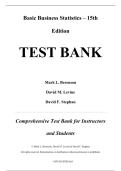 The Test Bank for Basic Business Statistics, 15th Edition by Berenson, Levine, and Stephan offers a complete and reliable set of exam-ready questions designed to support teaching and learning in business statistics courses. Covering a wide range of fundamental and advanced topics, the test bank aligns directly with the chapters of the textbook. These include: Defining and Collecting Data; Tabular and Visual Summarization of Variables; Numerical Descriptive Measures; Basic Probability; Discrete P...