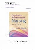 TEST BANK - Psychiatric Mental Health Nursing, 9th Edition by Sheila Videbeck, All 24 Chapters Covered, Verified Latest Edition