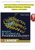 TEST BANK For Basic and Clinical Pharmacology, 15th Edition by Bertram G. Katzung, Verified Chapters 1 - 66, Complete Newest Version