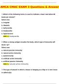 AMCA CMAC EXAM 3 Actual 2025 Exam with Questions and Answers (2025 / 2026) 100% Guarantee Pass. AMCA 2025 exam practice questions with guaranteed pass. AMCA medical assistant certification study guide 2025/2026. 100% verified AMCA test answers for 2025 exam. AMCA CMAC exam 3 and 4 preparation materials. Latest AMCA practice exam 1 with detailed explanations. AMCA medical assistant exam questions updated for 2025. Comprehensive AMCA practice test 1 with answer key. AMCA certification exam prep co...