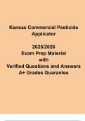 Prepare thoroughly for the Kansas Commercial Pesticide Applicator Exam with this expert-verified 2025/2026 study guide. This resource includes verified practice questions, detailed answers, and comprehensive coverage of pesticide safety, application methods, regulatory compliance, and environmental protection standards. Ideal for commercial pesticide applicators seeking certification, this study pack provides structured exam preparation, reinforces critical knowledge, and equips candidates with ...