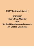 Ace the FDOT Earthwork Level 1 Final Exam with this expert-verified 2025/2026 prep guide. This comprehensive resource includes verified practice questions, detailed answers, and full coverage of earthwork principles, construction techniques, equipment handling, site safety, and Florida DOT regulations. Perfect for exam preparation, this FDOT Level 1 Earthwork Study Pack provides structured practice, reinforces critical knowledge, and equips candidates with the confidence needed to pass the certi...