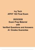 Prepare to excel in your Ivy Tech APHY 102 – Anatomy and Physiology II Final Exam (2025/2026 Edition) with this expert-verified study guide, featuring accurate exam questions, detailed answers, and clear explanations of advanced anatomy and physiology concepts. This comprehensive resource covers the cardiovascular, respiratory, endocrine, digestive, urinary, and reproductive systems. Perfect for lab reviews, quizzes, and final exam prep, this Ivy Tech APHY 102 Study Pack helps nursing and pre-...