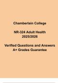 Excel in NR-324 Adult Health with this all-inclusive 2025/2026 exam prep and study guide. It includes verified questions, clinical case notes, and concise concept summaries covering key adult health nursing topics — from disease management and pharmacologic care to patient assessment and safety. Designed for Chamberlain College of Nursing students, this guide ensures thorough preparation for quizzes, finals, and clinical evaluations, helping you achieve A+ results with confidence.