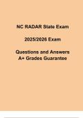Pass your NC RADAR State Exam with confidence using this expert-verified 2025/2026 Study Guide, tailored for North Carolina law enforcement officers. This resource includes accurate, up-to-date questions and detailed answers covering radar theory, speed measurement, calibration, and operational procedures. Perfect for academy trainees or officers seeking recertification, it simplifies complex concepts and ensures full readiness for the NC RADAR certification exam. Study smarter and achieve top r...