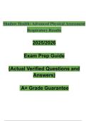 Master your Shadow Health Advanced Physical Assessment – Respiratory Results with this updated 2025/2026 study and exam prep guide. It includes expert-verified answers, accurate simulation responses, and detailed rationales to help you understand lung sounds, assessment techniques, and clinical interpretations. Ideal for nursing students preparing for digital clinical experiences (DCEs) or respiratory system assessments — ensuring accuracy, confidence, and top performance in every submission...