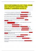 PSYCHOPHARMACOLOGY FINAL EXAM 2024 UPDATED QUESTIONS AND CORRECT ANSWERS RATED A+,PSYCHOPHARMACOLOGY FINAL EXAM 2024 UPDATED QUESTIONS AND CORRECT ANSWERS RATED A+,PSYCHOPHARMACOLOGY FINAL EXAM 2024 UPDATED QUESTIONS AND CORRECT ANSWERS RATED A+