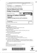 - 2025 Pearson Edexcel Level 3 GCE Biology A (Salters Nuffield) Advanced PAPER 2: Energy, Exercise and Coordination Combined Question Paper & Marking Scheme • Examen