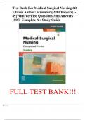Test Bank For Medical Surgical Nursing 6th Edition Author: Stromberg All Chapters[1- 49]With Verified Questions And Answers 100% Complete A+ Study Guide
