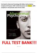 Test Bank for Abnormal Psychology 8th Edition Author:Barlow Complete All Chapters With Verified Questions And Answers 100% Complete A+ Study Guide Latest Version 2025