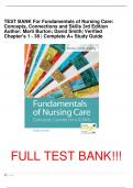 TEST BANK For Fundamentals of Nursing Care: Concepts, Connections and Skills 3rd Edition Author: Marti Burton; David Smith| Verified Chapter's 1 - 38 | Complete A+ Study Guide